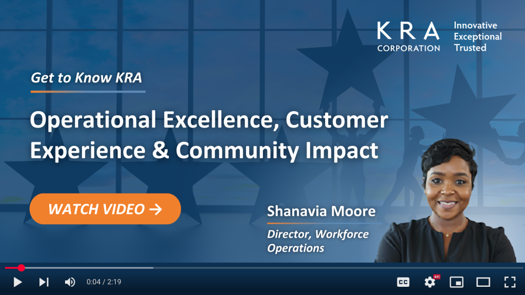 In this episode of Get to Know KRA, Shanavia Moore, Director of Workforce Operations, explains how KRA turns a vision of excellence into day-to-day execution across programs while keeping the experience strong for both job seekers and employers. She also shares why KRA’s mission motivates her.